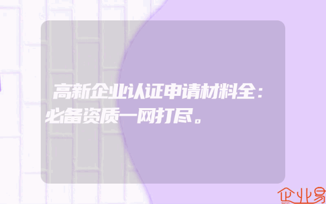 - 高新企业认证申请材料全:必备资质一网打尽。