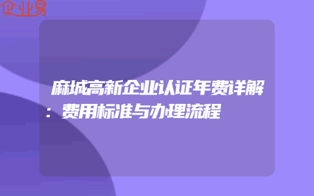 - 麻城高新企业认证年费详解:费用标准与办理流程
