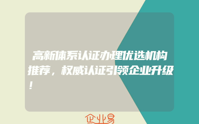- 高新体系认证办理优选机构推荐,权威认证引领企业升级!
