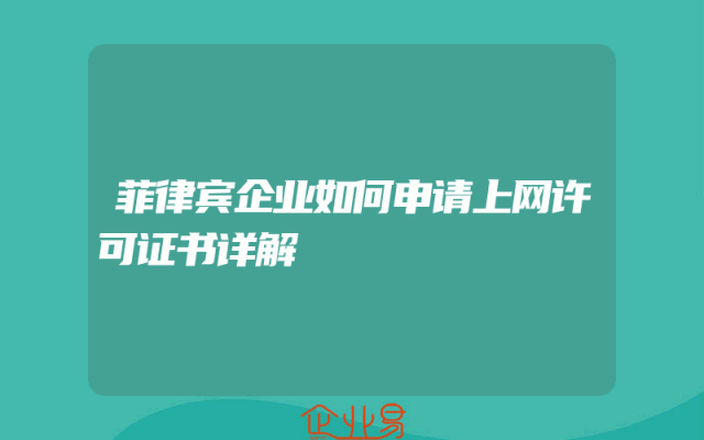 - 菲律宾企业如何申请上网许可证书详解一、了解上网许可证书的重要性随着互联网的普及和发展,菲律宾企业对于上网的需求也日益增长。为了规范互联网的使用和确保网络安全,菲律宾政府对于企业的上网行为实施了一系列的监管措施,其中上网许可证书便是重要的一环