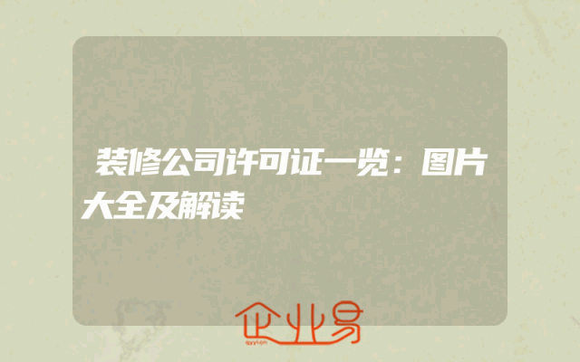 - 装修公司许可证一览:图片大全及解读一、许可证的重要性装修公司作为企业的一种形式,在进行各类装修业务前,必须拥有合法的经营许可证。这是企业合法经营的凭证,也是保障消费者权益的重要一环。许可证不仅证明了公司的资质和实力,更代表了公司所遵