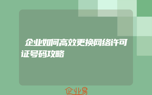 - 企业如何高效更换网络许可证号码攻略一、了解网络许可证更换政策及流程对于企业而言,高效更换网络许可证号码的首要任务是全面理解相关政策和流程。企业应及时关注政府部门发布的最新政策,了解网络许可证的换证条件、所需材料、办理时限等信息。在此基础上,