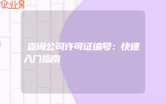 - 快速入门指南:查询公司许可证编号了解许可证的重要性在现代商业环境中,各类企业都需要持有相应的许可证才能合法经营。许可证是国家为了规范市场、保障公众利益而颁发的一种法定凭证,它不仅证明了企业的资质和实力,还是企业从事特定业务活动的必备条件。因