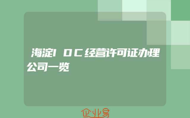 - 海淀IDC经营许可证办理公司一览一、引言随着互联网技术的快速发展,数据中心(IDC)业务日益繁荣。海淀作为科技创新的核心区域,众多IDC服务提供商纷纷设立运营点,而在设立这些运营点时,获取IDC经营许可证成为必不可少的环节。本文将详细介绍海