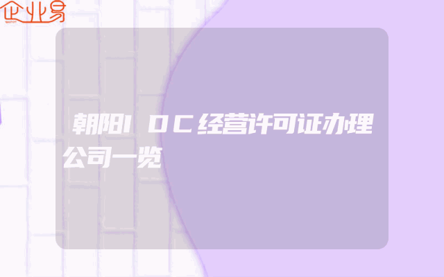 - 朝阳IDC经营许可证办理公司一览