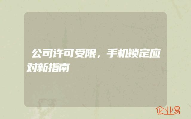 - 公司许可受限,手机锁定应对新指南