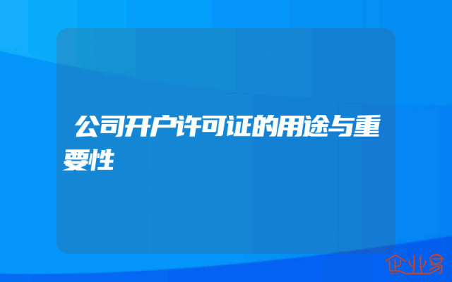 - 公司开户许可证的用途与重要性