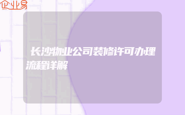 - 长沙物业公司装修许可办理流程详解