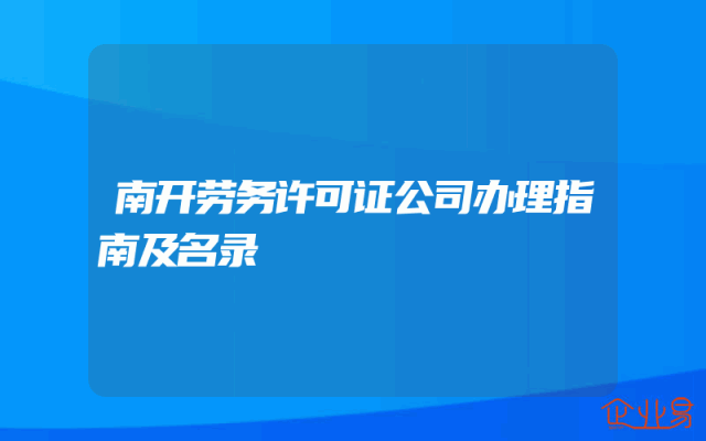 - 南开劳务许可证公司办理指南及名录一、了解劳务许可证的重要性在现代社会,企业合法经营的前提是取得相应的资质和许可。对于从事劳务派遣业务的公司来说,劳务许可证是其合法运营的必备证件。南开劳务许可证公司办理指南旨在帮助企业和个人了解办理劳务许可证