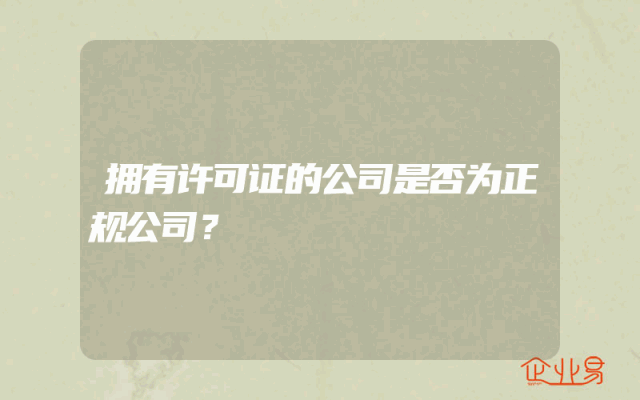 - 拥有许可证的公司是否为正规公司?一、许可证的定义与作用许可证是国家行政机关针对特定行业或业务活动颁发的证书,用以证明企业具备从事某项特定工作或业务的资质和条件。在现代社会,合法合规是企业生存和发展的基础。拥有许可证的企业意味着其已经