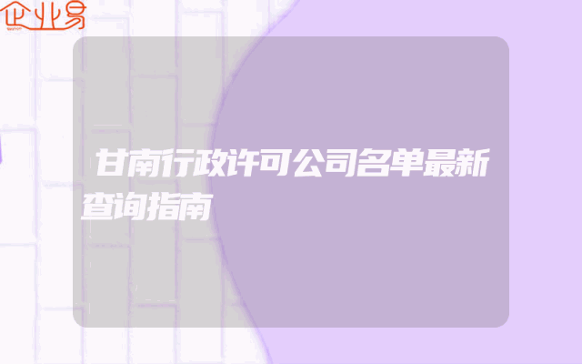 - 甘南行政许可公司名单最新查询指南一、甘南行政许可概述甘南藏族自治州是中国重要的旅游目的地之一,为加强企业监管与服务,当地政府对于各类行政许可的办理有着明确的规定和流程。对于想要了解甘南行政许可公司名单的企业和个人,最新的查询指南能够帮助您快