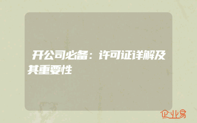 - 公司必备:许可证详解及其重要性一、许可证的种类与功能在现代商业环境中,企业为了合法运营,必须获取一系列的许可证。这些许可证根据其业务类型和所在地区的不同,种类各异。常见的许可证包括营业执照、税务登记证、行业特定经营许可证等。这些许可证的主要