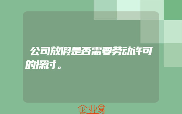 - 公司放假是否需要劳动许可的探讨一、劳动许可的概念及适用范围劳动许可是指企业在进行生产经营活动时,必须符合国家法律法规规定的条件和标准,获得相应的许可和批准。对于公司放假这一行为,首先需要明确的是,放假是企业根据自身经营情况、国家法定节假日等