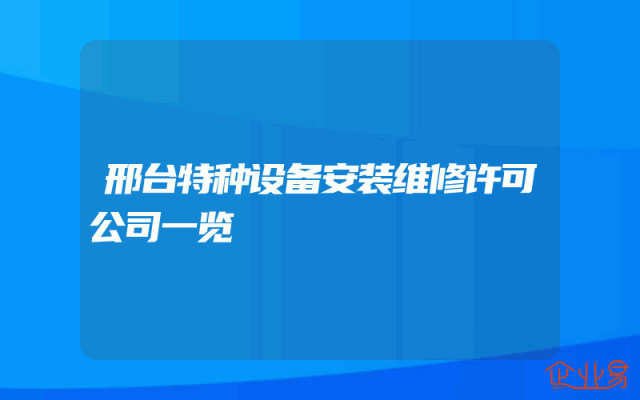 - 邢台特种设备安装维修许可公司一览