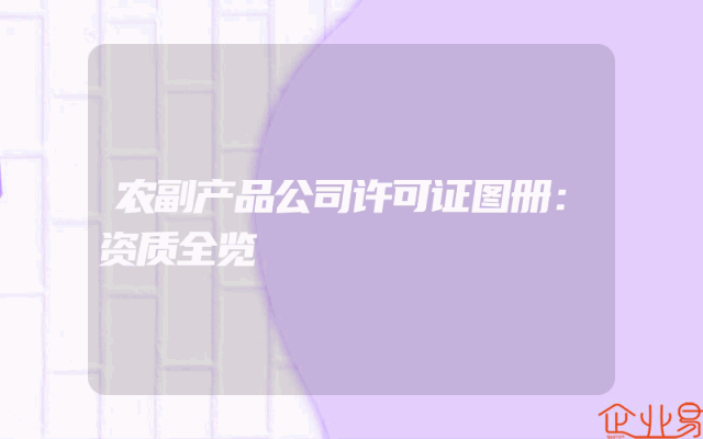 - 农副产品公司许可证图册:资质全览一、许可证的重要性在农副产品行业中,许可证是公司合法运营的关键资质。这些许可证不仅确保了企业的合法性和合规性,还是企业向消费者展示自身信誉和产品质量的重要依据。对于想要从事农副产品业务的企业来说,了解许可证的