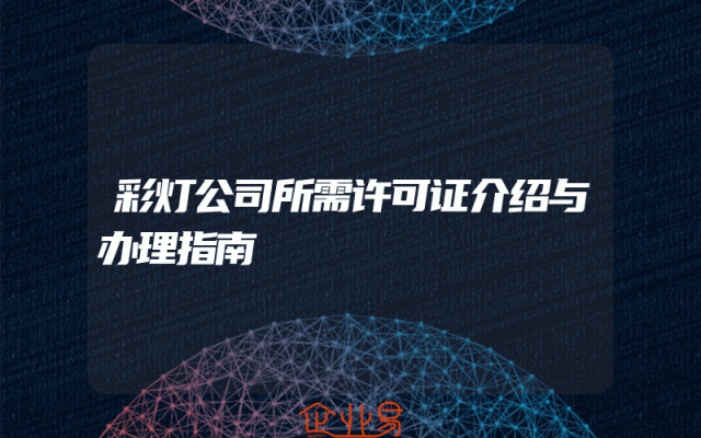 - 彩灯公司所需许可证介绍与办理指南一、彩灯公司所需许可证概述随着文化娱乐产业的快速发展,彩灯公司作为提供节日庆典氛围营造及文化艺术展现的企业,在日常运营过程中需涉及多项许可。本文将为您详细介绍彩灯公司所需的主要许可证及办理指南。二、主要许可证