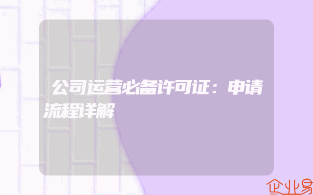 - 公司运营必备许可证:申请流程详解