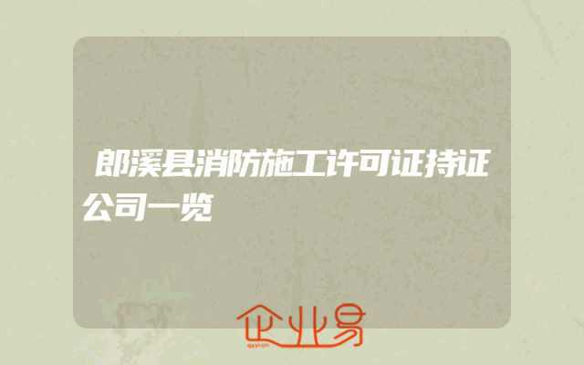 - 郎溪县消防施工许可证持证公司一览