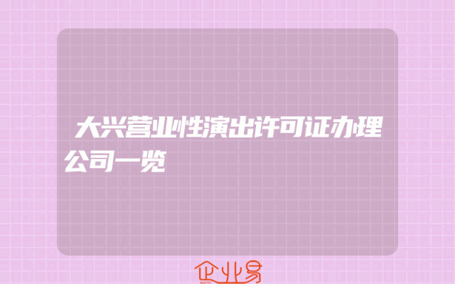 - 大兴营业性演出许可证办理公司一览