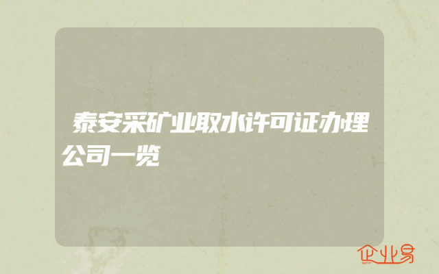 - 泰安采矿业取水许可证办理公司一览