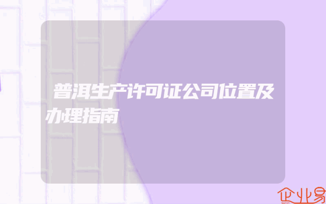 - 普洱生产许可证公司位置及办理指南