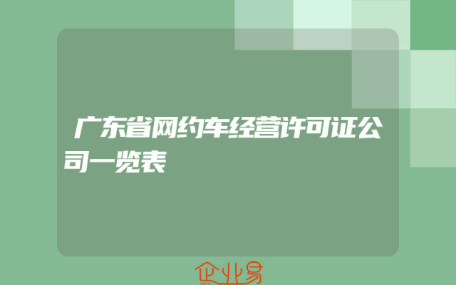 - 广东省网约车经营许可证公司一览表