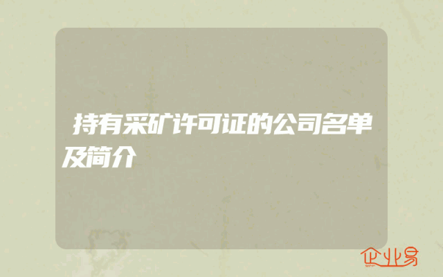 - 持有采矿许可证的公司名单及简介一、公司名单在矿产资源的开发与利用中,持有采矿许可证的公司扮演着重要的角色。以下是部分持有采矿许可证的知名公司名单:1.中国石油天然气集团有限公司2.中国石油化工集团公司3.中国五矿集团公司4.兖矿集团有限公司