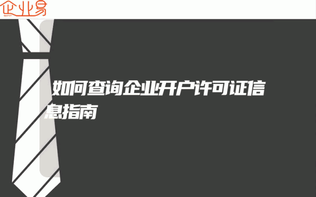 - 如何查询企业开户许可证信息指南一、了解开户许可证企业开户许可证是国家金融监管机构对企业银行账户管理的重要证明文件。随着金融行业的快速发展,企业开户许可证的查询变得尤为重要。了解开户许可证的基本信息,如证件类型、编码等,是查询的前提条件。二、