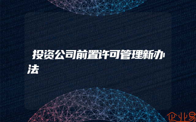 - 投资公司前置许可管理新办法解析背景介绍随着经济的不断发展,投资公司在市场上的数量与规模逐渐增多,为了规范市场秩序,优化营商环境,政府对投资公司前置许可管理进行了新的调整与规定。新办法的出台,旨在确保投资公司的合规运营,维护市场公平竞争。新办