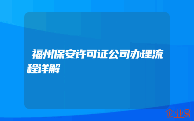 - 福州保安许可证公司办理流程详解一、了解保安服务许可证相关政策和要求在福州,想要成立一家保安服务公司,首先需要了解国家及地方关于保安服务的政策和法规。保安服务许可证是公司从事保安服务的必备资质,其办理流程和要求严格。申请人应掌握相关的政策和标
