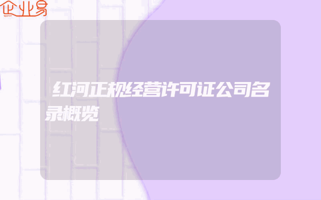 - 红河正规经营许可证公司名录概览一、引言随着市场经济的繁荣发展,红河地区的各类企业日益增多,经营许可证的办理成为企业合法运营的重要一环。本篇文章将为您呈现红河地区正规经营许可证公司的名录概览,旨在帮助广大企业了解当地经营许可证的办理情况,以便