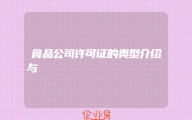 - 食品公司许可证的类型介绍与解析随着食品产业的飞速发展,企业的合法经营愈发显得重要。作为企业服务行业从业者,本文将介绍和解析食品公司许可证的类型,以便为相关企业办理资质提供指导和参考。许可证的类型涵盖了企