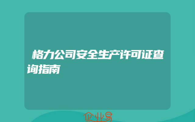 - 格力公司安全生产许可证查询指南一、了解安全生产许可证的重要性对于任何企业来说,安全生产许可证都是开展正常经营活动的必要条件之一。格力公司作为一家大型企业,更是需要严格遵守安全生产相关法规。安全生产许可证不仅证明了企业具备安全生产条件,更是企