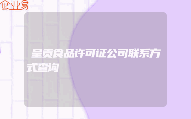 - 呈贡食品许可证公司联系方式查询