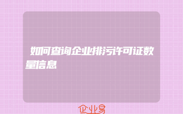 - 如何查询企业排污许可证数量信息一、了解排污许可证制度背景随着环境保护意识的加强,我国对排污企业的管理愈发严格。排污许可证作为企业合法排放污染物的凭证,其数量及有效性直接关系到企业的生产经营活动。了解企业排污许可证的数量信息,对于监督企业环保