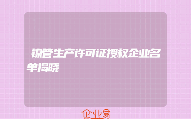 - 镍管生产许可证授权企业名单揭晓