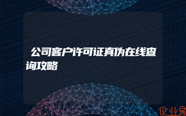 - 公司客户许可证真伪在线查询攻略一、了解许可证查询背景及重要性对于企业和个人而言,核实公司客户许可证的真伪至关重要。随着互联网技术的发展,伪造许可证的行为屡见不鲜,为了保障业务合作的安全与合法性,学会在线查询许可证真伪已成为一项必备技能。本文