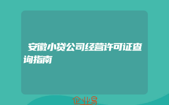 - 安徽小贷公司经营许可证查询指南