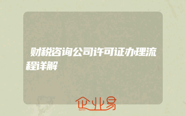 - 财税咨询公司许可证办理流程详解
