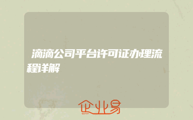 - 滴滴公司平台许可证办理流程详解一、引言随着互联网的快速发展,网约车行业迅速崛起,滴滴公司成为了这一领域的佼佼者。为了确保业务的合规运营,滴滴公司需要办理多种许可证。本文将详细阐述滴滴公司平台许可证的办理流程,帮助大家了解整个过程的复杂性和细