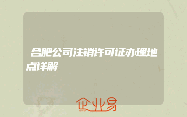 - 合肥公司注销许可证办理地点详解一、引言随着市场经济的发展,企业在经营过程中可能会遇到需要注销公司的情况。在合肥地区,注销公司许可证的办理是一个重要的环节。本文将详细解析合肥公司注销许可证的办理地点及相关事项,以便为企业界人士提供指导和帮助。