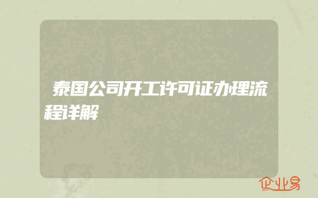 - 泰国公司开工许可证办理流程详解