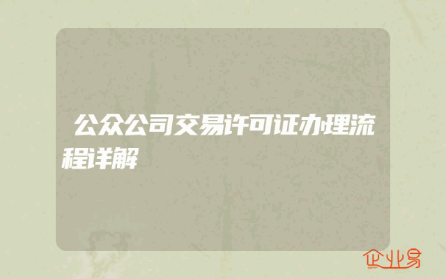 - 公众公司交易许可证办理流程详解