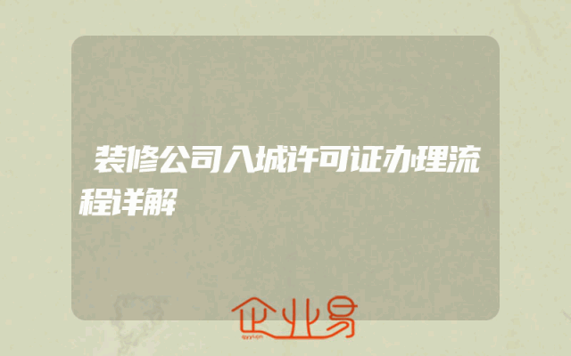 - 装修公司入城许可证办理流程详解一、什么是入城许可证入城许可证,是城市管理的手段之一,旨在规范外来装修公司进入城市从事装修业务的行为。该许可证是开展装修业务的必备资质,体现了公司的业务合规性和专业性。只有获得许可证的公司才能在该城市承接装修工