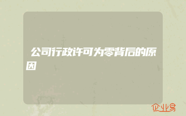 - 公司行政许可为零背后的原因解析一、政策环境的宽松与优化在当前经济环境下,政府为了鼓励企业创新与发展,不断调整和优化政策环境。这种背景下,公司行政许可为零的现象正是政策宽松和优化的结果之一。越来越多的行政许可项目被简化和合并,企业不再