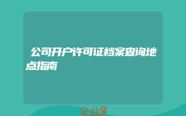 - 公司开户许可证档案查询地点指南一、了解开户许可证的重要性对于一家公司而言,开户许可证是开设银行账户的重要凭证,它记录了公司的基本信息和账户信息。因此,了解开户许可证档案查询地点对于维护公司财务安全和合规性至关重要。本文将为您提供详细的查询地
