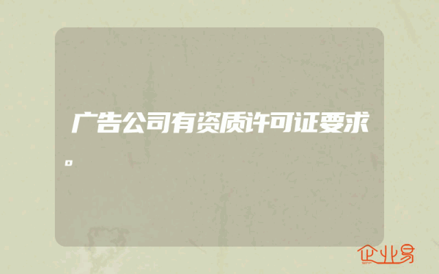 - 广告公司有资质许可证要求解析一、引言随着市场经济的繁荣,广告公司作为连接广告客户与媒介的桥梁,其作用愈发重要。而针对广告公司的资质许可证要求,则体现了行业的规范性和对服务质量的监管。本文将详细解析广告公司的资质许可证要求,从多个角度阐述其重
