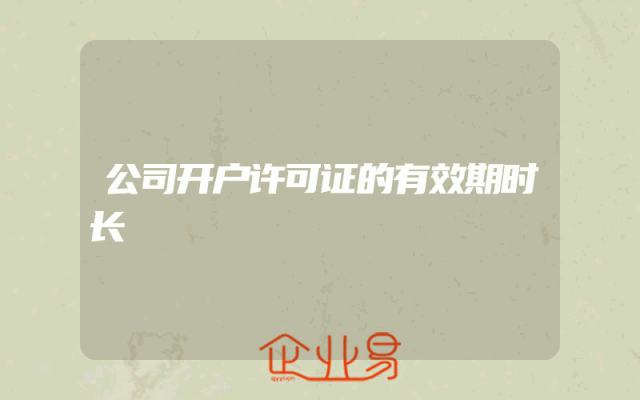 - 公司开户许可证的有效期时长解析一、开户许可证的基本概述公司开户许可证是企业在银行开立账户的重要凭证,也是企业开展金融业务的基本前提。其有效期时长对于企业的正常运营有着不可忽视的影响。此证书由中国人民银行或其他金融机构颁发,用于确认企业的银行