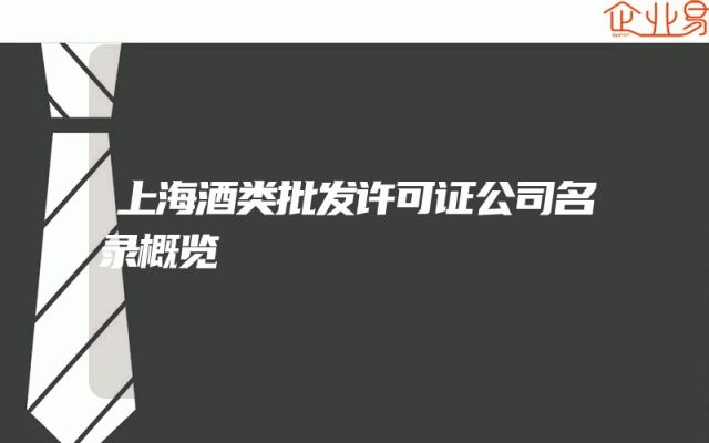 - 上海酒类批发许可证公司名录概览一、引言随着上海经济的繁荣发展,酒类批发行业也日渐兴旺。想要从事酒类批发业务,企业必须具备相应的资质,即酒类批发许可证。本文旨在为读者呈现上海酒类批发许可证公司的名录概览,以了解行业现状和各类公司的基本情况。二