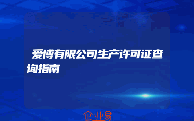 - 爱博有限公司生产许可证查询指南一、了解生产许可证的重要性对于任何一家制造企业来说,生产许可证是企业合法运营的基石。爱博有限公司在生产过程中必须遵守国家相关法律法规,而获得生产许可证则是企业守法经营、产品合格的证明。对于消费者而言,选择持有生